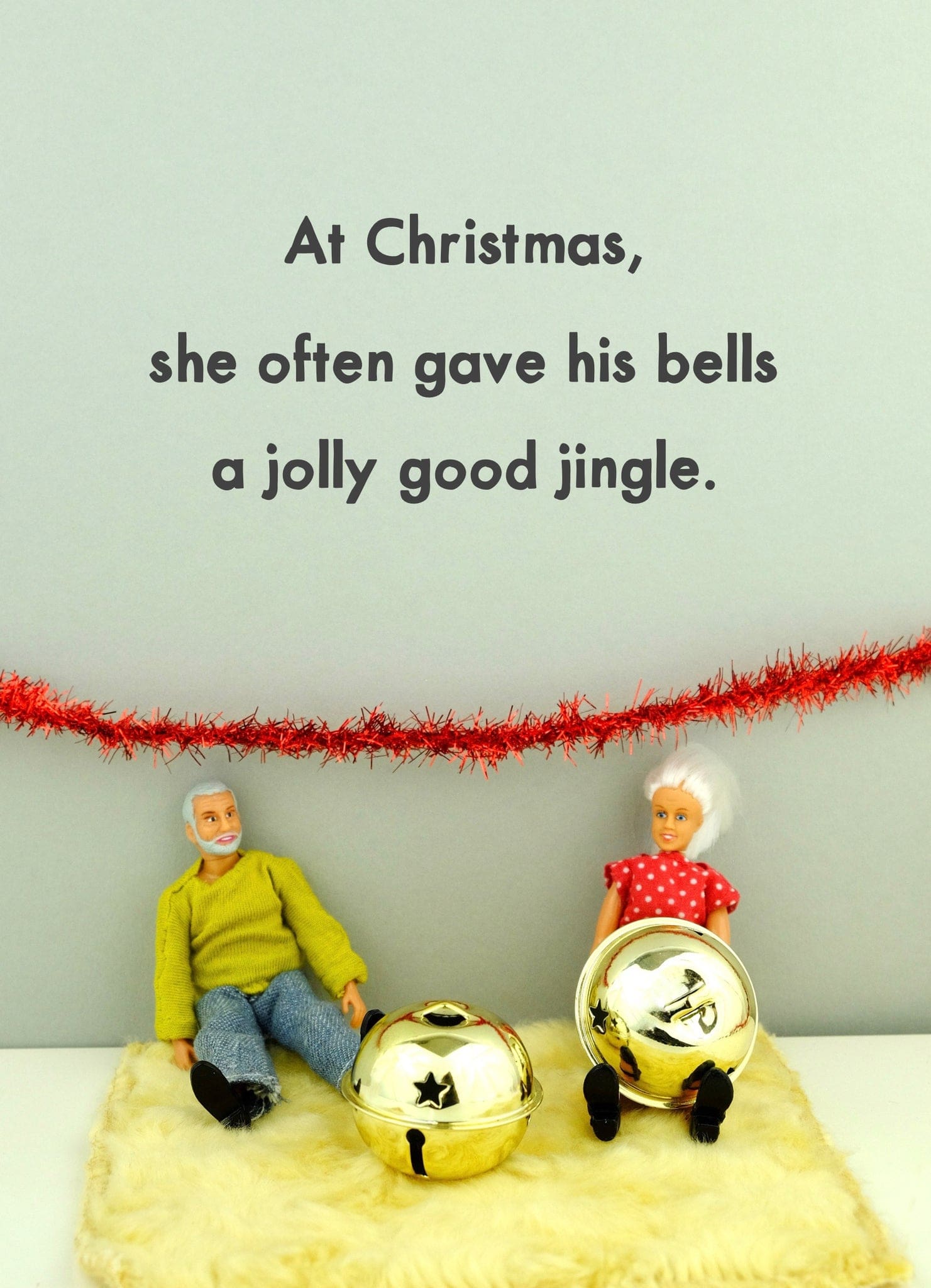 Greeting card measures 5 x 7″ and includes colourful envelope. INSIDE: She jingles them so good, she has him singing to his own tune! Printed in Canada