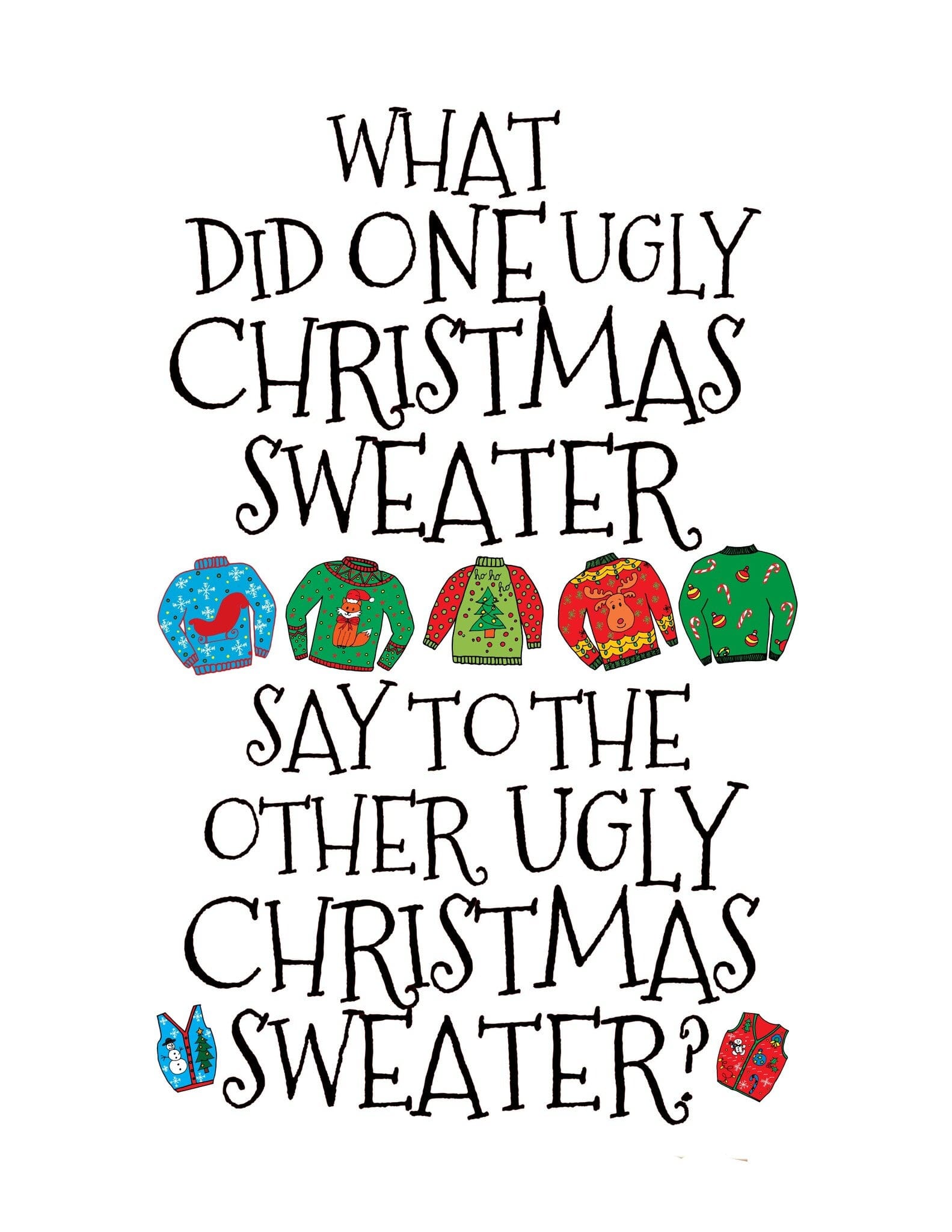 This greeting card measures 5 x 7 and comes with colourful envelopes. INSIDE: Nothing Stupid, Sweaters Can’t Talk!. Printed in Canada