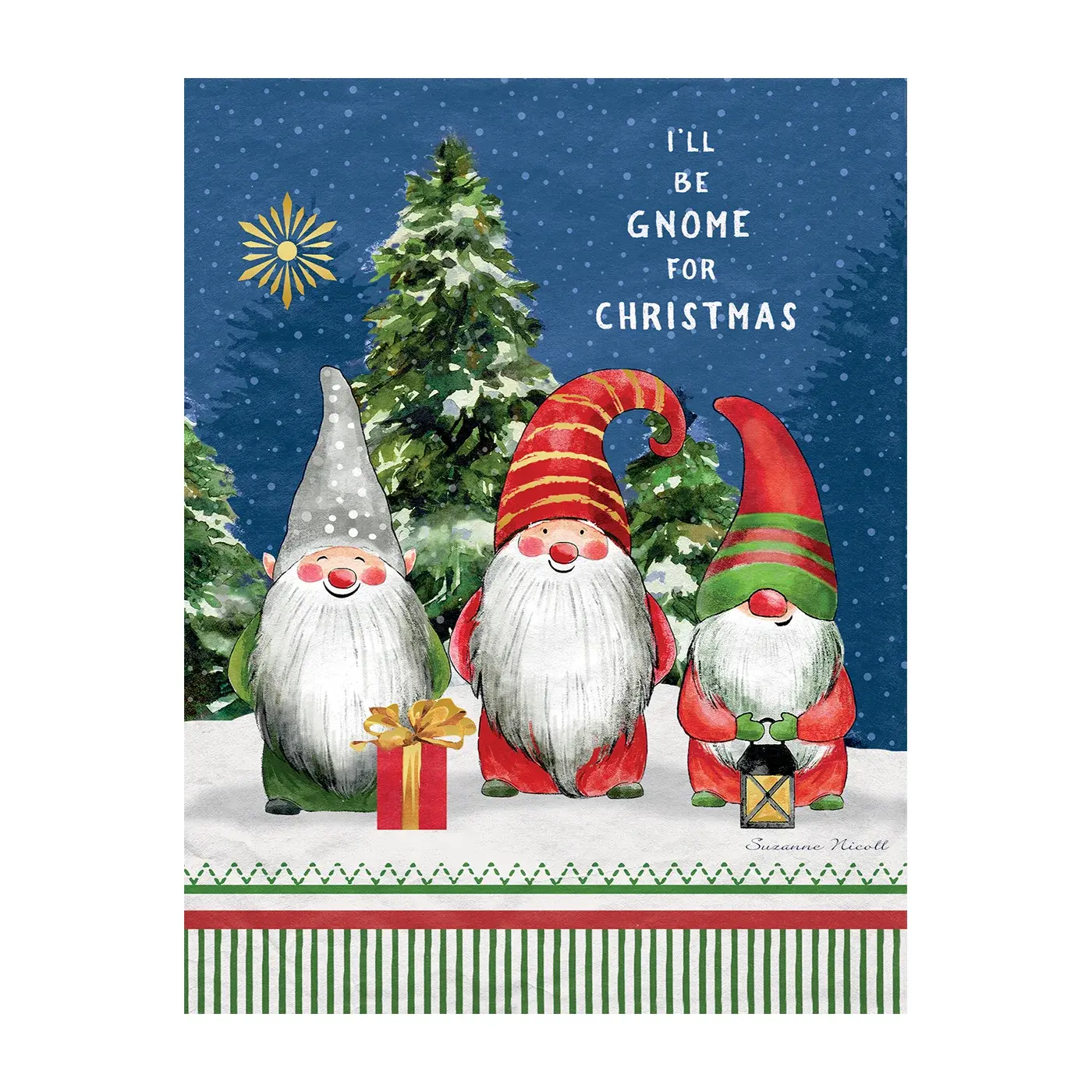 8 cards and 19 envelopes. Linen-embossed paper stock. Full-color, sturdy keepsake box. Card: 6.875″w x 5.375″h. Box: 7.75″w x 6″h x 1.5″d. Inside text: Merry Christmas.